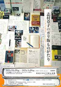 滋賀県にある「東近江市ガリ版伝承館」で開催される、「志村章子のガリ版ものがたり―ガリ版文化研究第一人者の探究と伝承の足跡―」展のお知らせを『新ガリ版ネットワーク通信』の編集者でありガリ版アーティストでもある水口菜津子さんからいただいた。