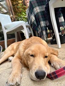 Nさんの場合、前のゴールデンを亡くしてまもなく、母親Nさんを心配した娘さんがネットで子犬を探してくれたのだ。生まれは青森県弘前市、そしてここ北杜市高根町のNさんのお宅にやってきたのが9月の初めだ。生後5ヶ月のナイジェルは可愛かった。ナイジェルを抱くと、パルと同じ匂いがする。うーん、懐かしい!それから2ヶ月、我慢できなくなってまた出かけてきたしまったわけだ。